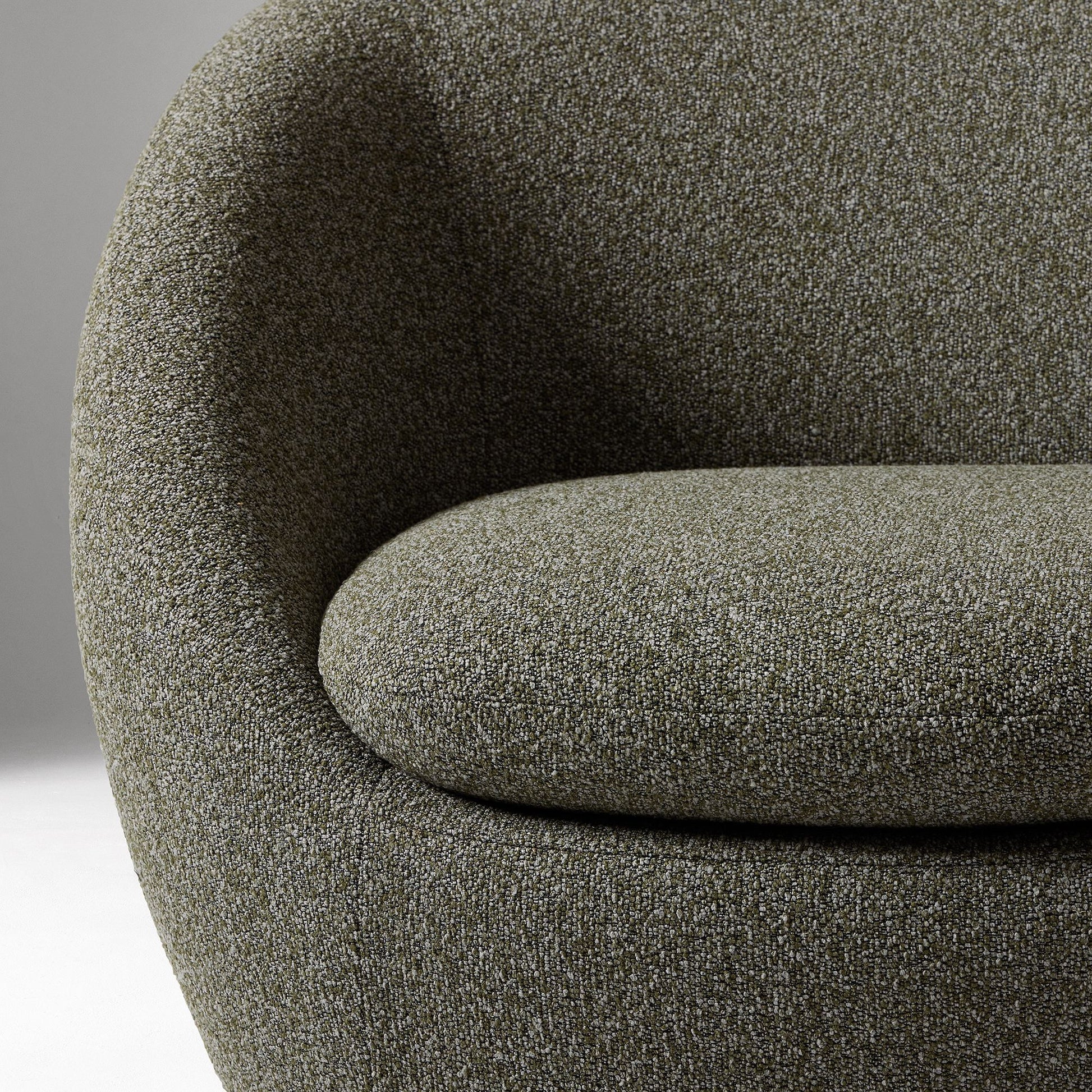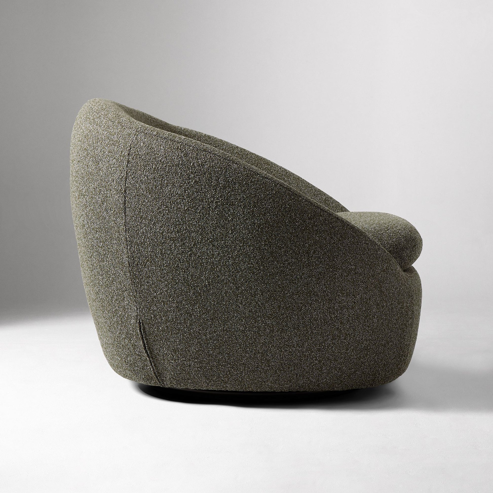 Upholstered in rich textured boucle fabric, it adds warmth and sophistication to any room, whether placed in a living room, bedroom, reading corner, or office lounge. The smooth swivel base allows effortless 360° movement, making it as functional as it is stylish.